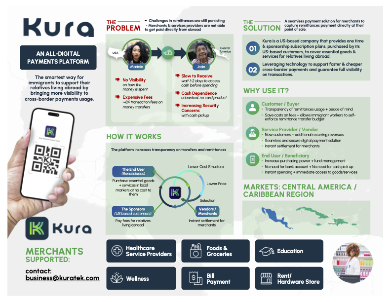 - Inclusivity: Many Haitians do not own a bank account – but most own a mobile phone. Kura’s mobile solution makes it simple for anyone to utilize their platform, regardless of banking status.